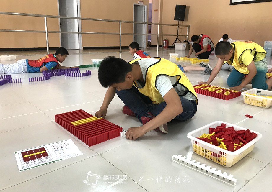 8-11岁的少年朋友参加创意大挑战的比赛项目。本次的比赛主题是:各族儿童庆六一,每支参赛队都要创意码放一幅与比赛战,主题相关的多米诺图案。虽然都是第一次参加多米诺比赛,却并没有紧张与胆怯,而是将心中最美的画面,用五颜六色的骨牌堆砌展现出来。一幅幅大相径庭的多米诺画卷,同样述说着各族儿童心中对于六一的美好憧憬。