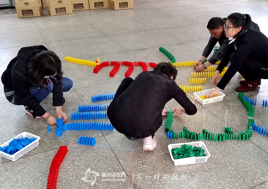 参加培训的老师们为了能够给同学们提供更好的帮助与辅导,认真地学习了188金宝搏官方入口知识、骨牌码放技巧,并在个人吉尼斯金宝搏188体育纪录创造者马立华老师及金宝搏188体育首席讲师王磊老师的指导下,完成了一组多米诺图案的码放,为多米诺辅导员培训划了一个圆满的句号。