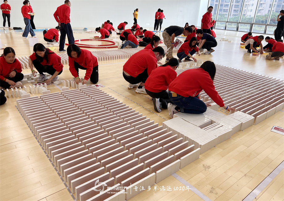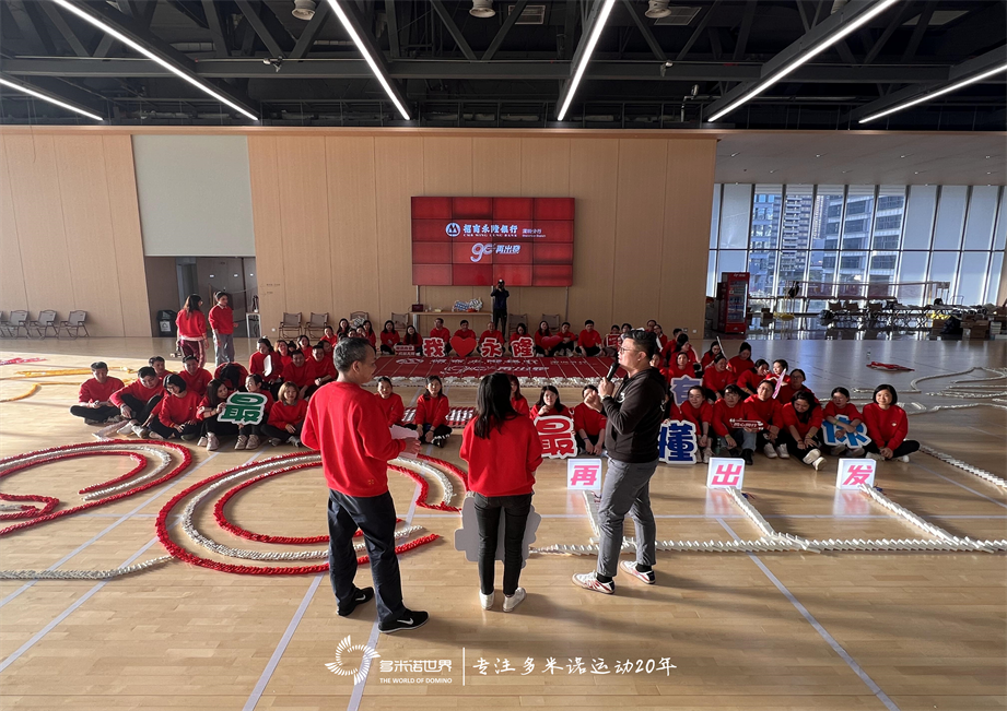2月的深圳,温暖而舒适,周末的下午,60余位招商永隆银行-深圳分行的伙伴齐聚在体育馆里,在老师的带领下,共同完成了一幅近26000余枚多米诺骨牌组成的作品。