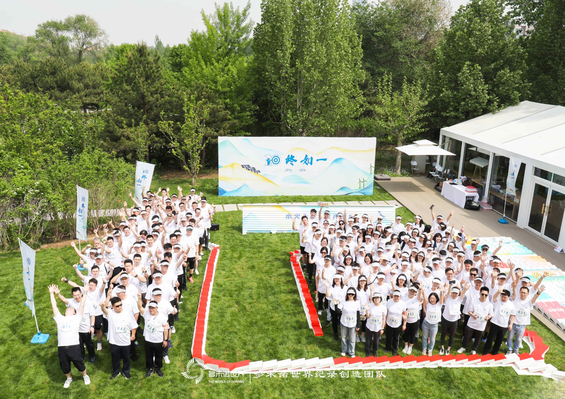 活动开始,伙伴完成签到后就加入到司庆的特别活动——共创多米诺画卷中。每位伙伴将印有公司历程的特制骨牌一块块搭建起来,每一块骨牌都代表着华能天成在过去十年中的重要时刻和成就,经过伙伴们的精心搭建,一幅从2014年到2024年的历程画卷顺利完成,象征着华能天成一路走来的坚韧和毅力。
