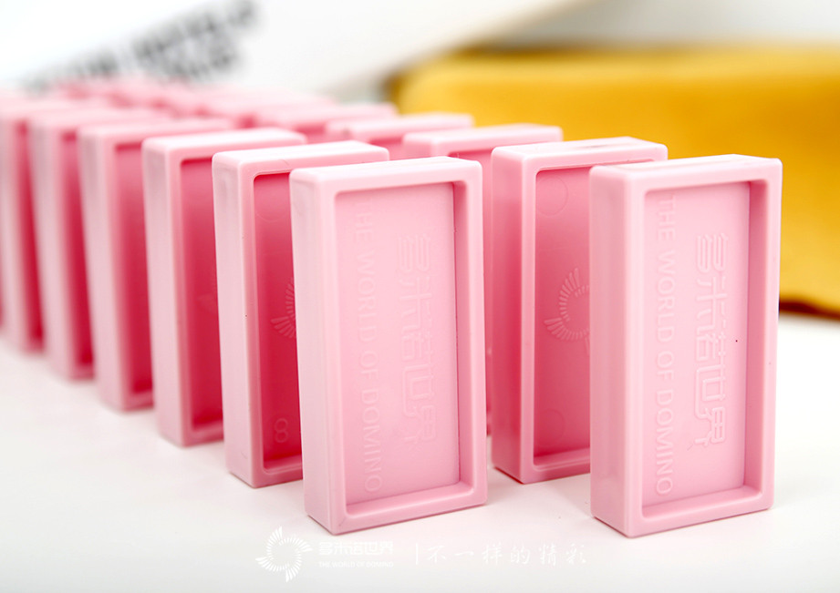 器材特点:采用PC+ABS工程合金制作的训练骨牌(型号:D50-A),两面为凹槽处理,手持骨牌的稳定性更强,适合儿童和多米诺初学者;有“红、橙、黄、绿、浅绿、蓝、浅蓝、紫、浅紫、粉、浅粉、咖啡、黑、白、灰、透明”16种颜色可供选择,骨牌图案的色彩更丰富、有层次感。